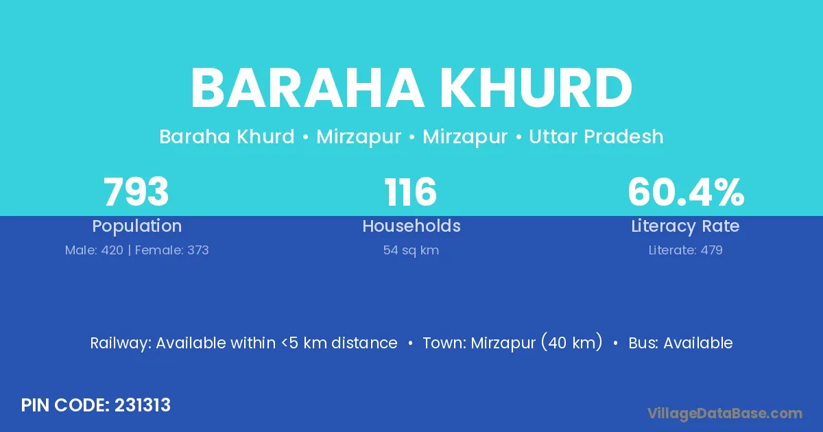 Semaria (12 km) is the nearest town to Baraha Khurd village for major economic activities and is located approximately 12 km away.