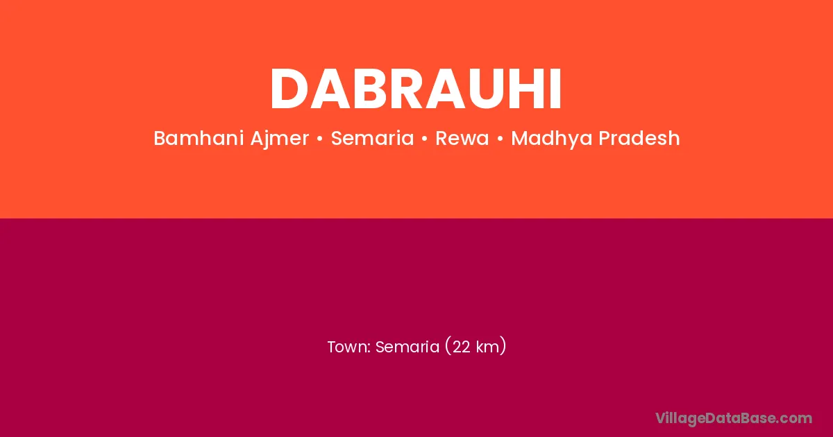 Semaria (22 km) is the nearest town to Dabrauhi village for major economic activities and is located approximately 22 km away.