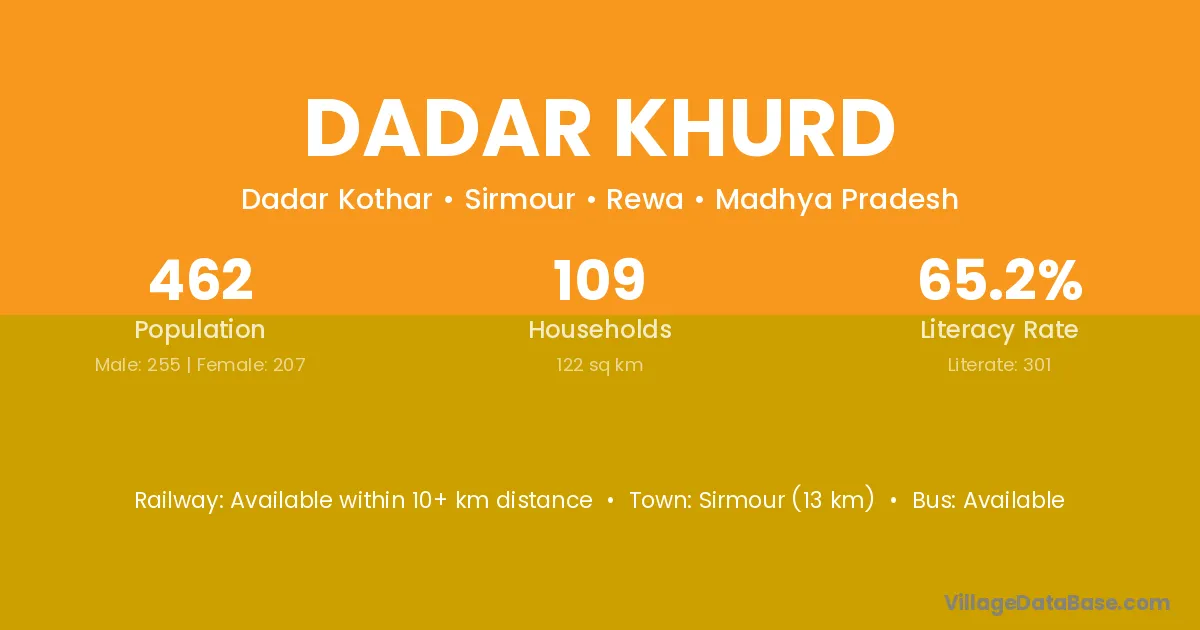 Dadar Khurd village has a total population of 462 people, of which 255 are males and 207 are females.