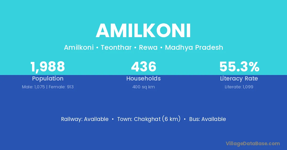 Amilkoni village is located in the Teonthar Tehsil of the Rewa district in Madhya Pradesh .