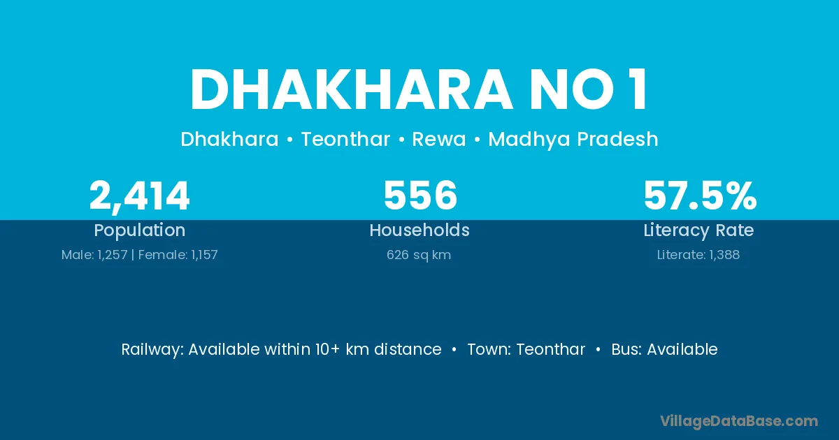 Dhakhara No 1 village has a total population of 2,414 people, of which 1,257 are males and 1,157 are females.