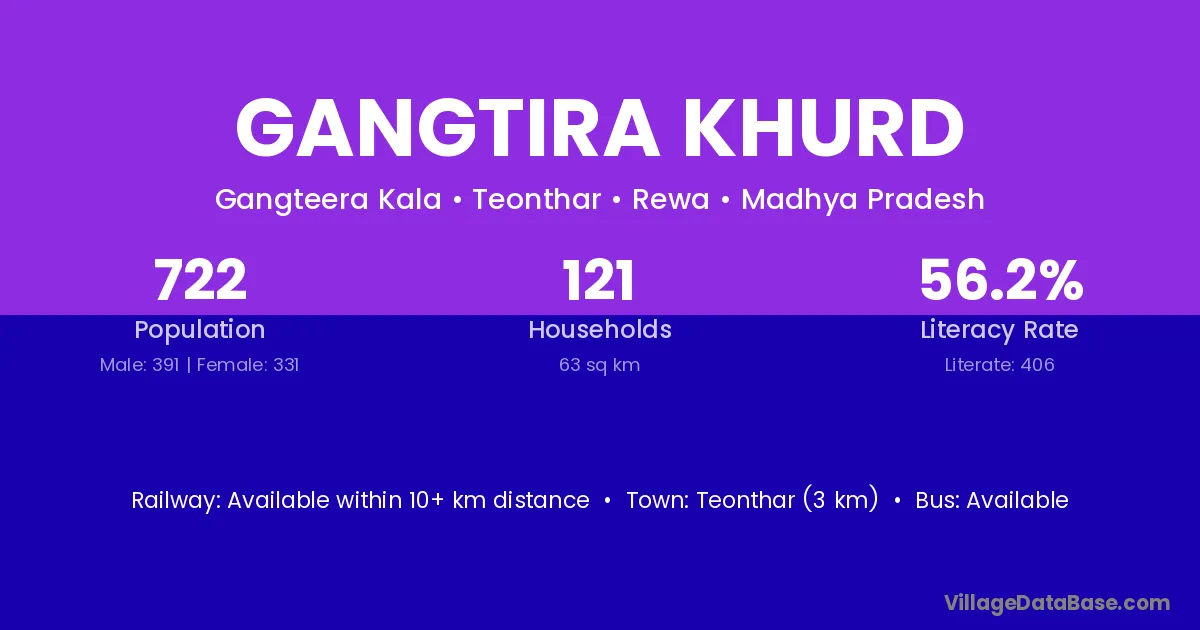 Teonthar (3 km) is the nearest town to Gangtira Khurd village for major economic activities and is located approximately 3 km away.