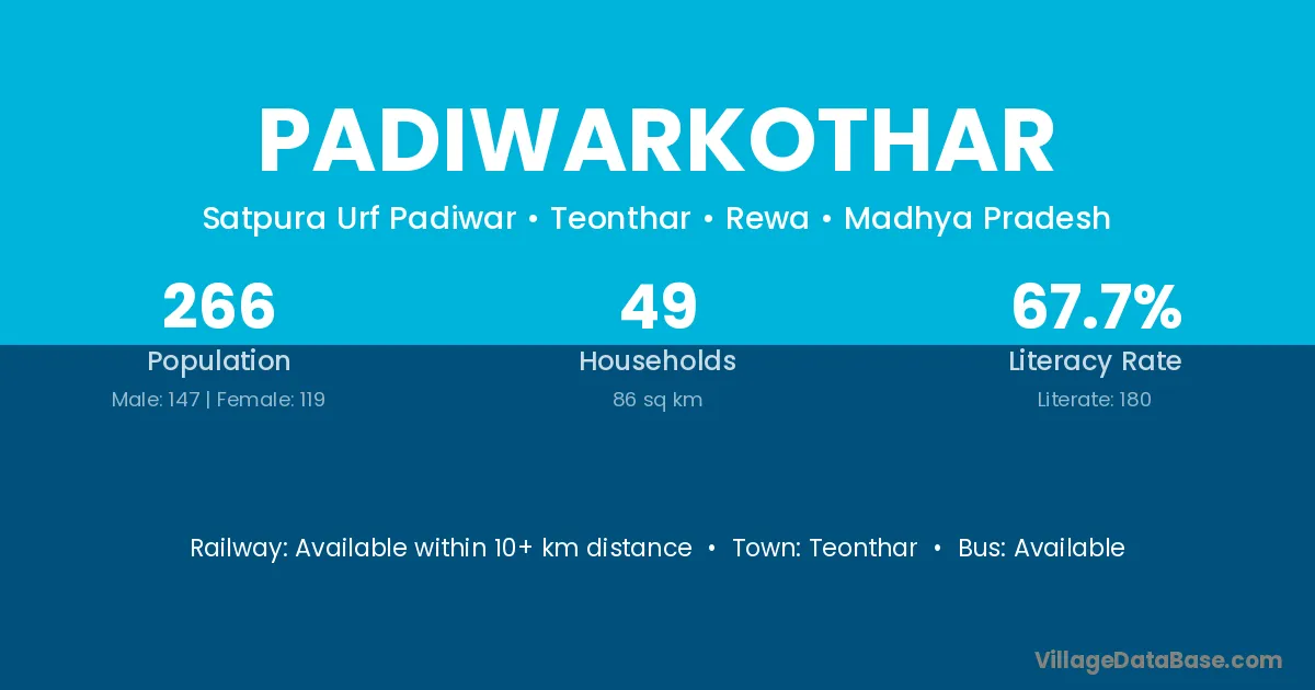 Teonthar is the nearest town to Padiwarkothar village for major economic activities