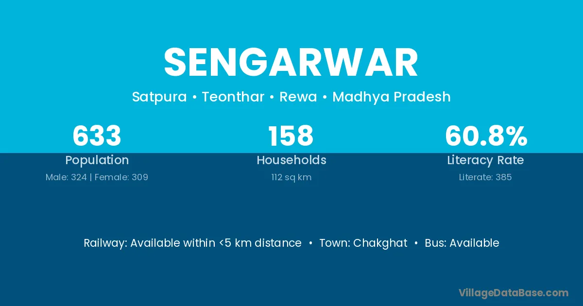 Sengarwar village has a total population of 633 people, of which 324 are males and 309 are females.
