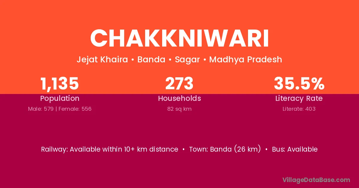 Banda (26 km) is the nearest town to Chakkniwari village for major economic activities and is located approximately 26 km away.