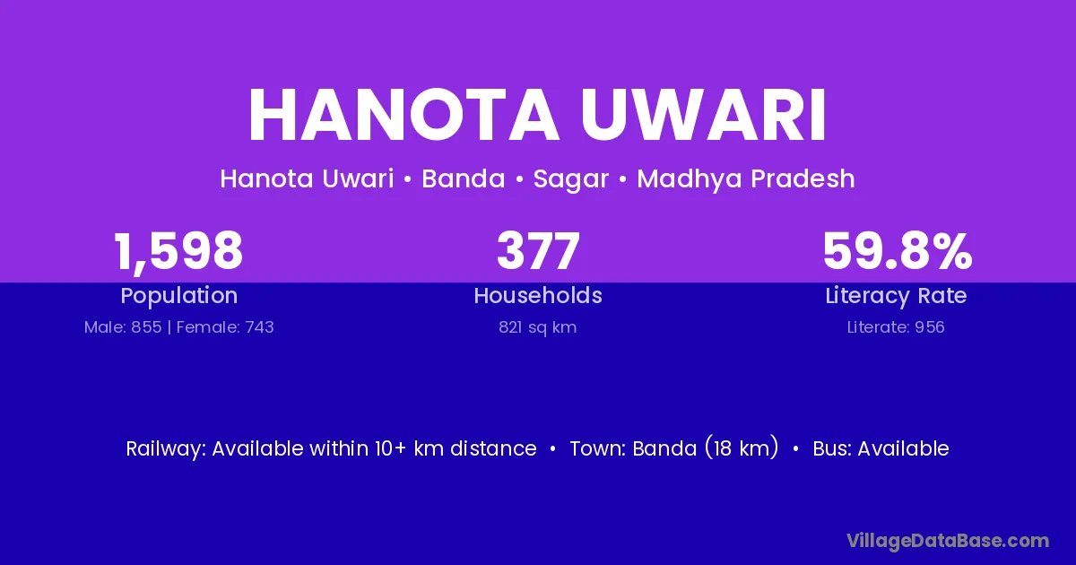Banda (18 km) is the nearest town to Hanota Uwari village for major economic activities and is located approximately 18 km away.