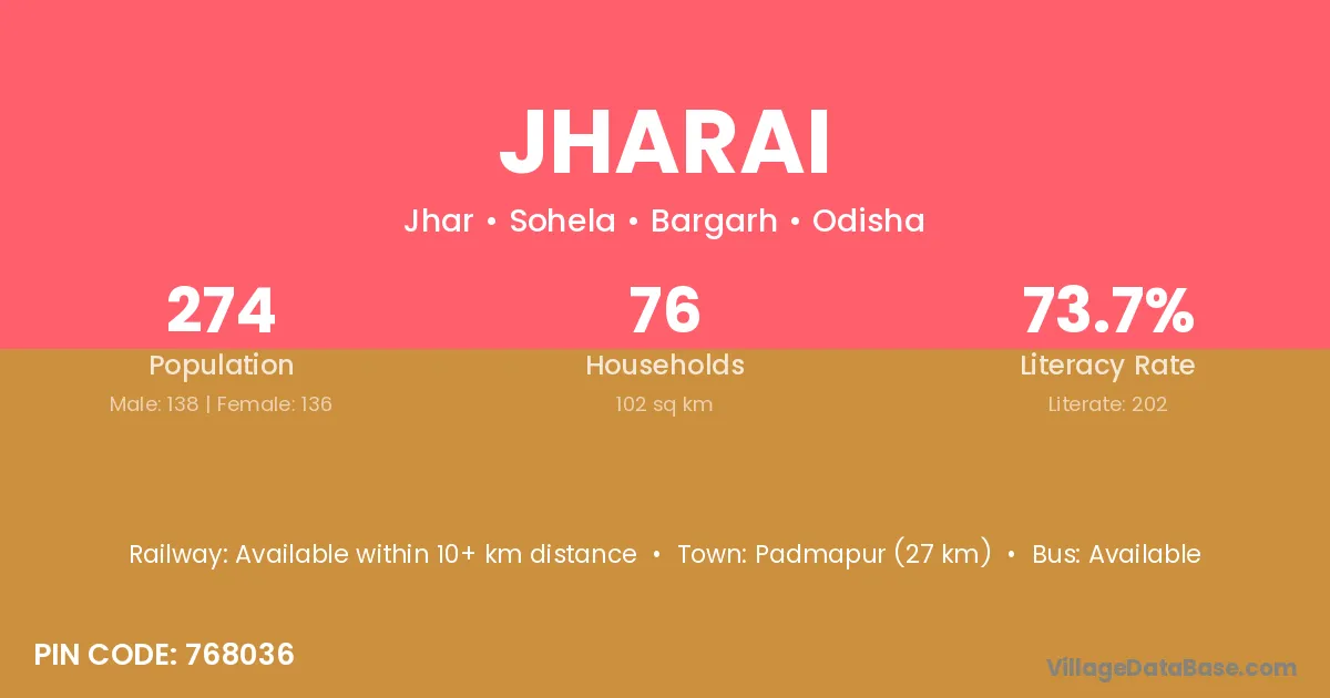 Jharai village has a total population of 426 people, of which 213 are males and 213 are females.