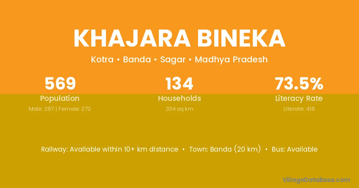 Banda (20 km) is the nearest town to Khajara Bineka village for major economic activities and is located approximately 20 km away.