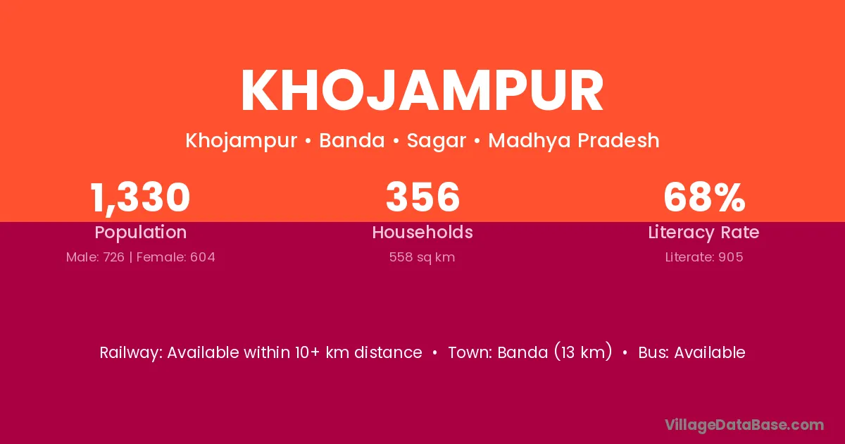 Banda (13 km) is the nearest town to Khojampur village for major economic activities and is located approximately 13 km away.