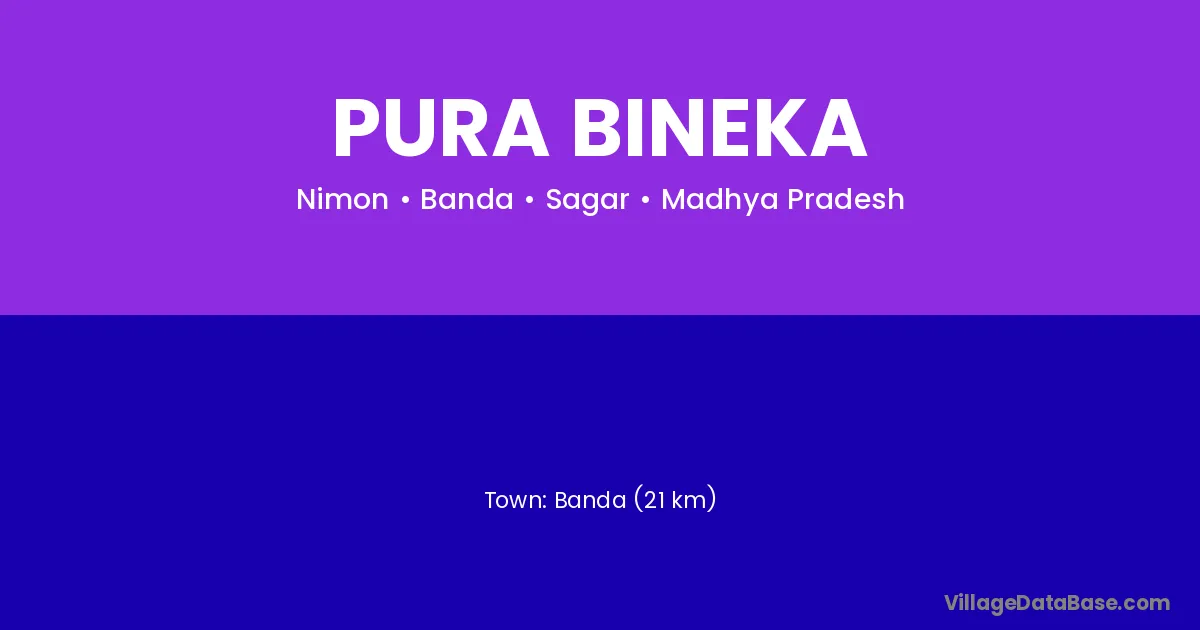 Banda (21 km) is the nearest town to Pura Bineka village for major economic activities and is located approximately 21 km away.