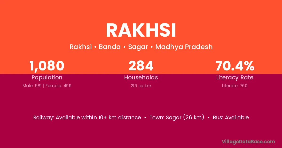 Sagar (26 km) is the nearest town to Rakhsi village for major economic activities and is located approximately 26 km away.