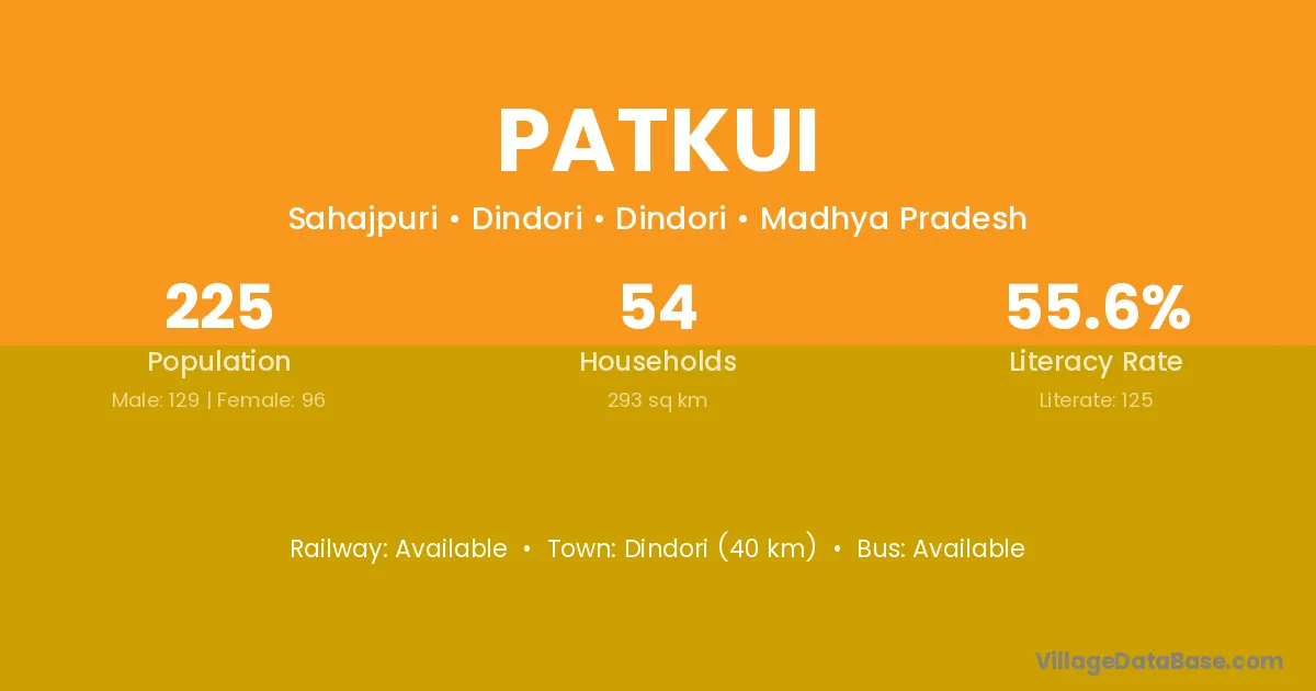 Bina-etawa (20 km) is the nearest town to Patkui village for major economic activities and is located approximately 20 km away.