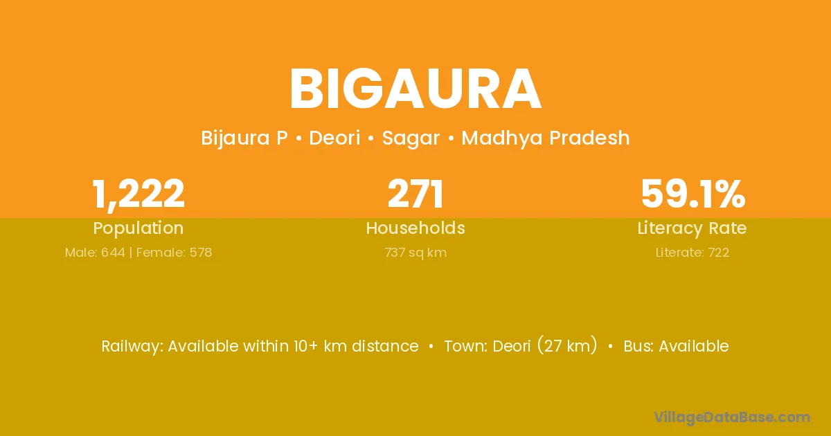 Deori (27 km) is the nearest town to Bigaura village for major economic activities and is located approximately 27 km away.