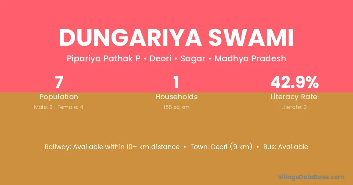 Dungariya Swami village has a total population of 7 people, of which 3 are males and 4 are females.