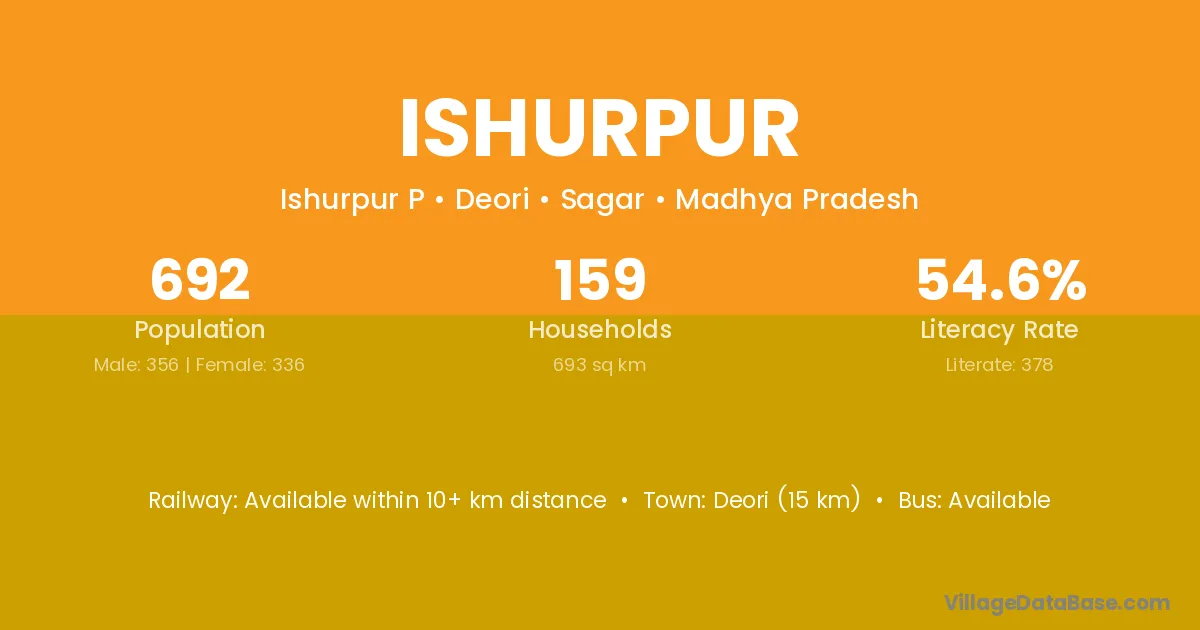 Deori (15 km) is the nearest town to Ishurpur village for major economic activities and is located approximately 15 km away.