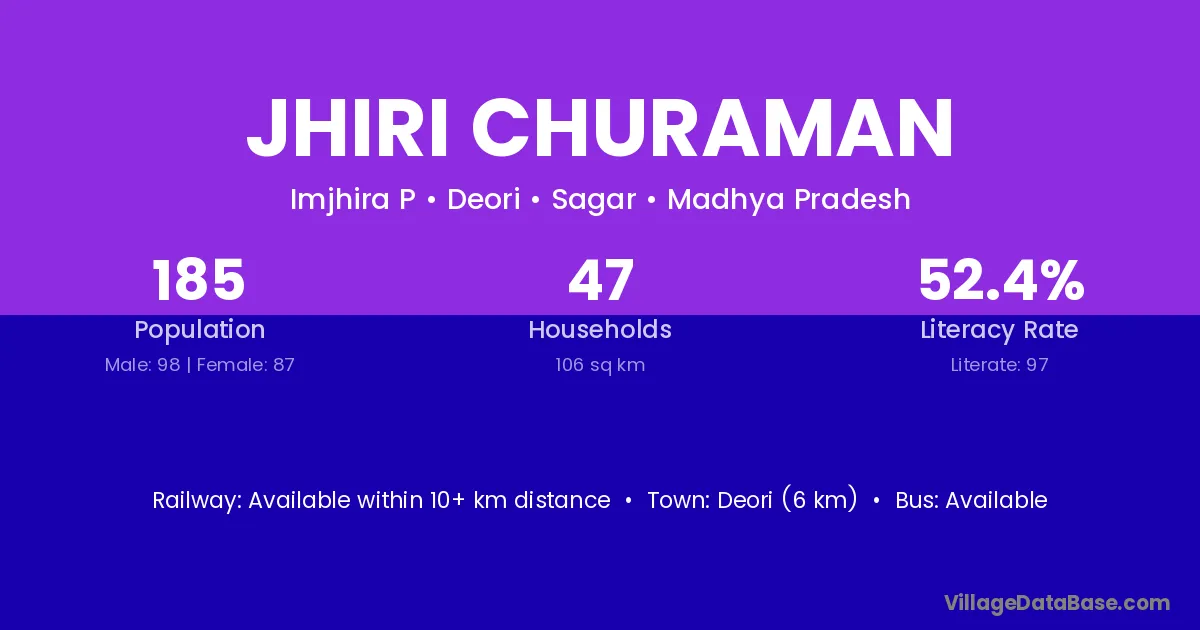 Deori (6 km) is the nearest town to Jhiri Churaman village for major economic activities and is located approximately 6 km away.
