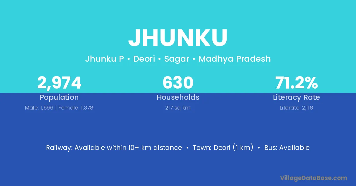 Deori (1 km) is the nearest town to Jhunku village for major economic activities and is located approximately 1 km away.