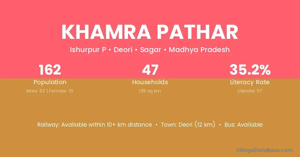 Deori (12 km) is the nearest town to Khamra Pathar village for major economic activities and is located approximately 12 km away.