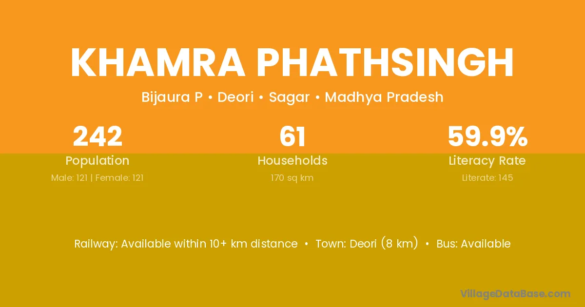 Khamra Phathsingh village has a total population of 242 people, of which 121 are males and 121 are females.