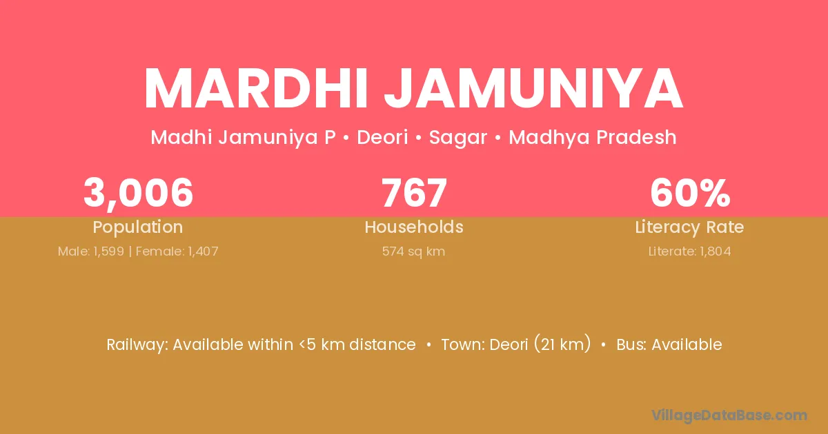 Deori (21 km) is the nearest town to Mardhi Jamuniya village for major economic activities and is located approximately 21 km away.