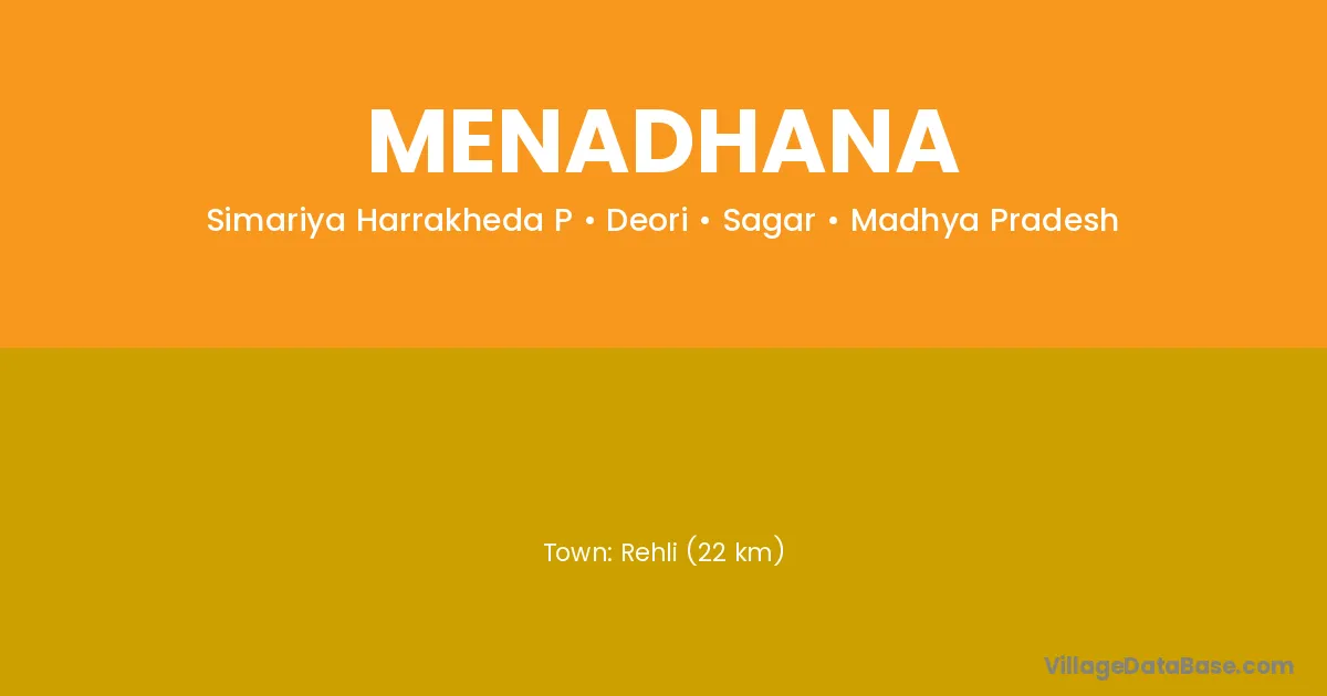 Rehli (22 km) is the nearest town to Menadhana village for major economic activities and is located approximately 22 km away.