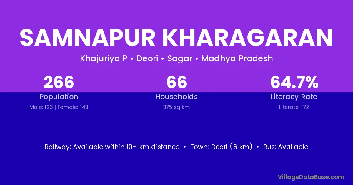 Deori (6 km) is the nearest town to Samnapur Kharagaran village for major economic activities and is located approximately 6 km away.