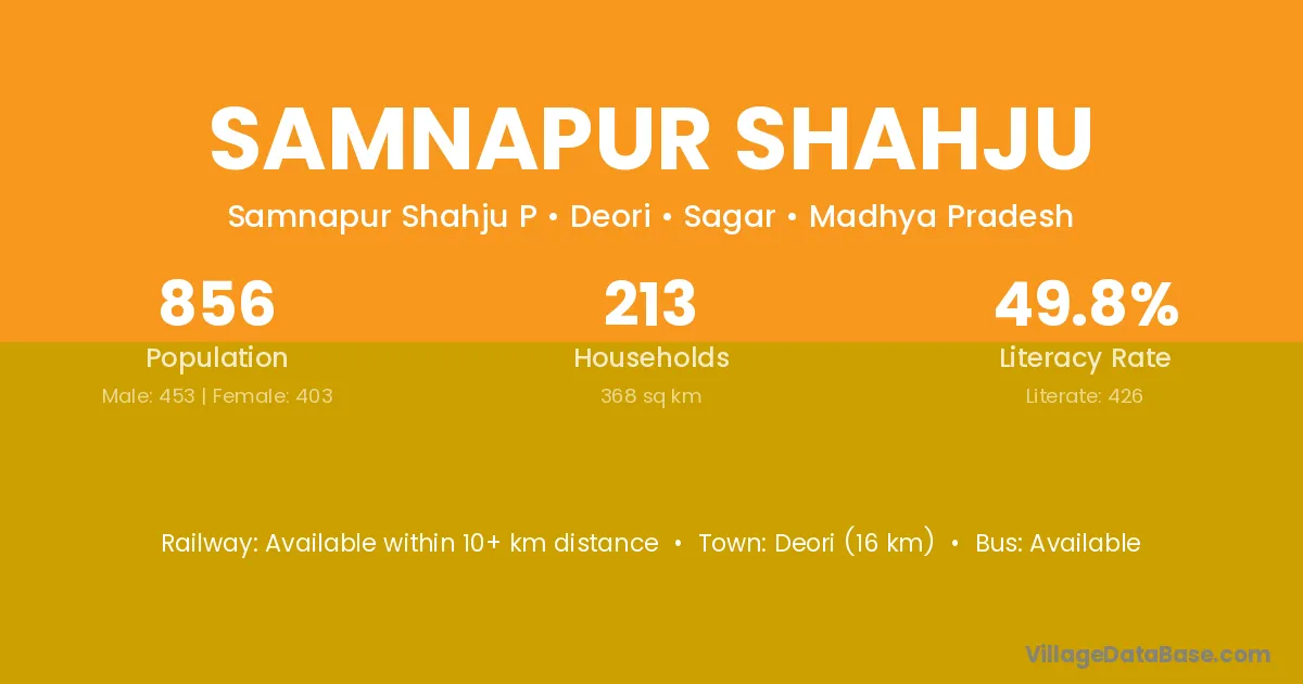 Samnapur Shahju village has a total population of 856 people, of which 453 are males and 403 are females.