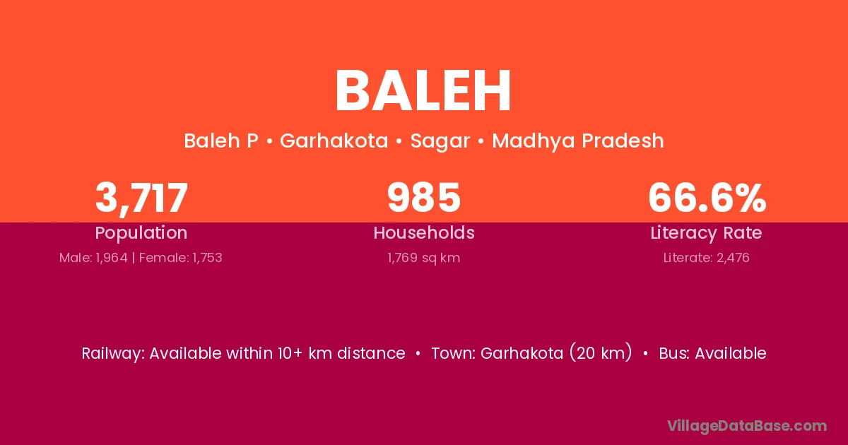 Garhakota (20 km) is the nearest town to Baleh village for major economic activities and is located approximately 20 km away.
