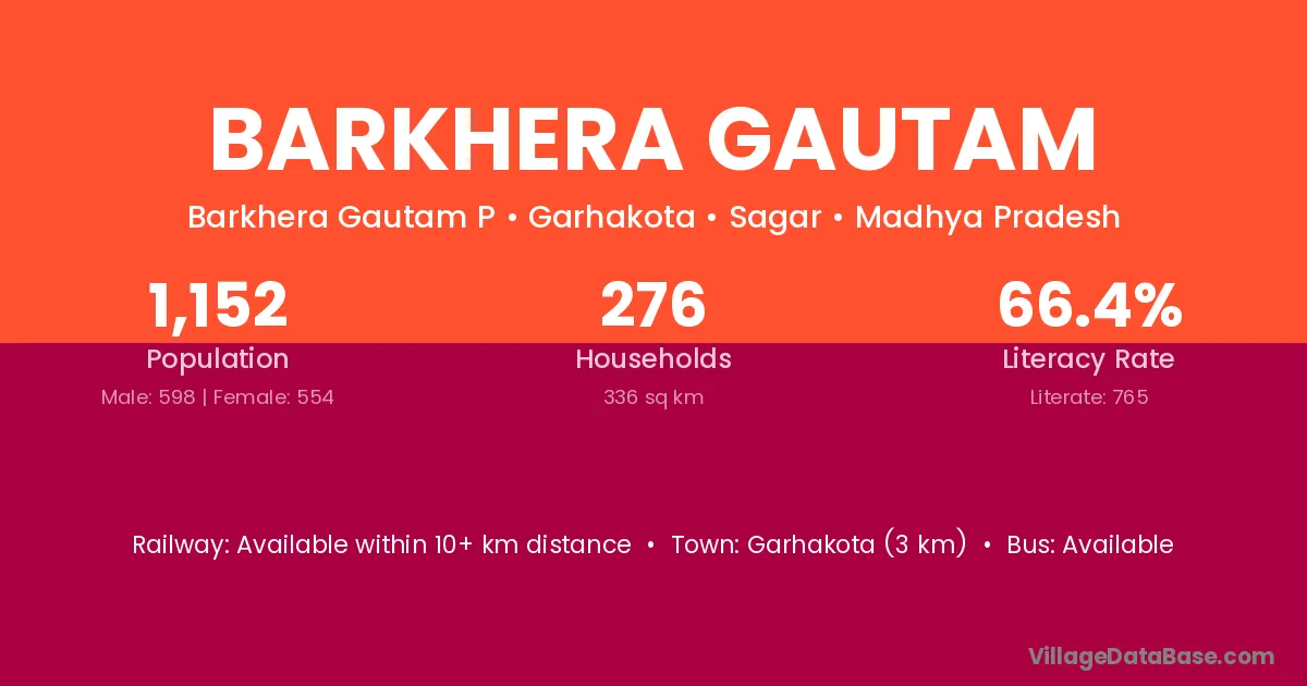 Garhakota (3 km) is the nearest town to Barkhera Gautam village for major economic activities and is located approximately 3 km away.