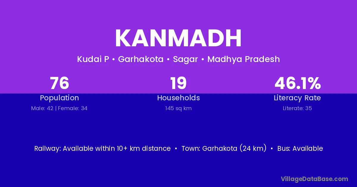 Garhakota (24 km) is the nearest town to Kanmadh village for major economic activities and is located approximately 24 km away.