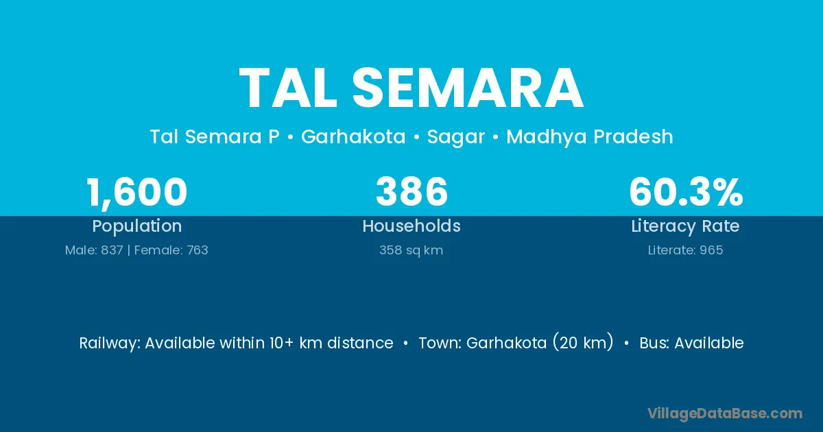 Garhakota (20 km) is the nearest town to Tal Semara village for major economic activities and is located approximately 20 km away.