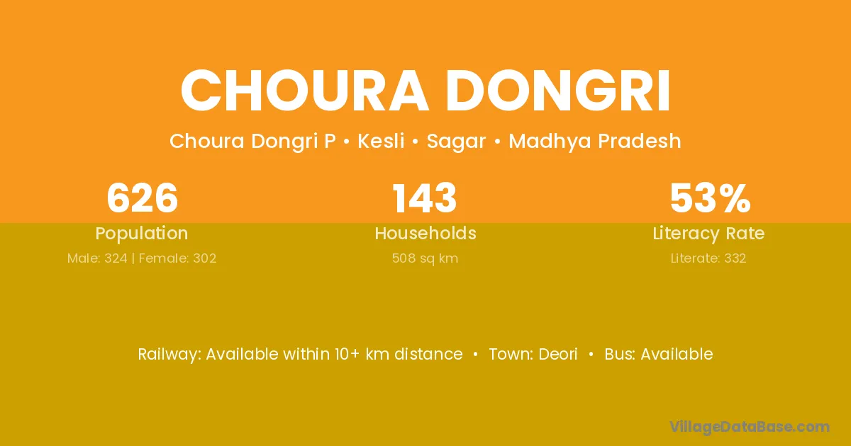 Deori is the nearest town to Choura Dongri village for major economic activities