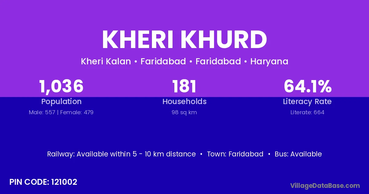 The literacy rate of Kheri Khurd village is 51.84%. Male literacy stands at 59.44% and female literacy at 43.41%.
