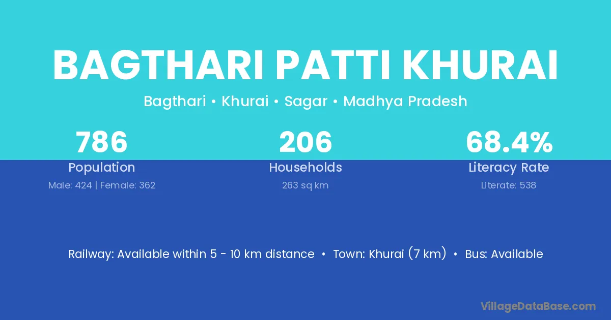 Bagthari Patti Khurai village has a total population of 786 people, of which 424 are males and 362 are females.