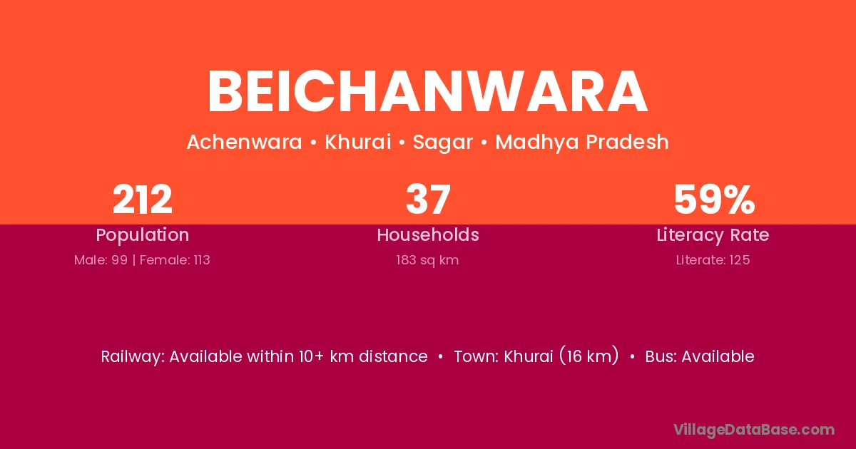 Khurai (16 km) is the nearest town to Beichanwara village for major economic activities and is located approximately 16 km away.