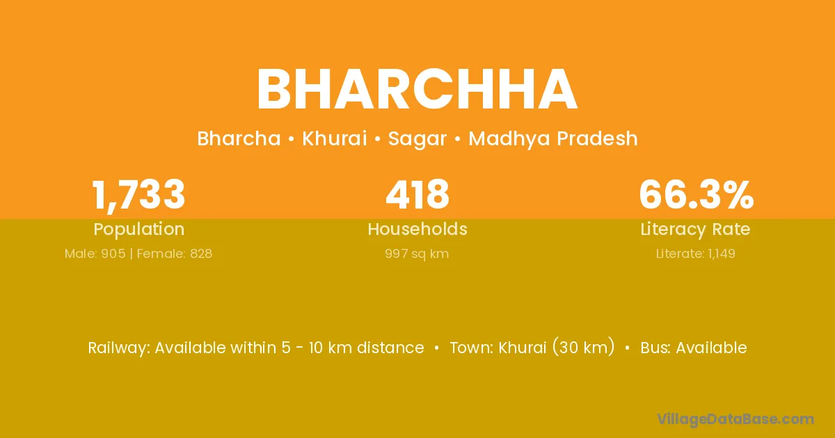 Khurai (30 km) is the nearest town to Bharchha village for major economic activities and is located approximately 30 km away.
