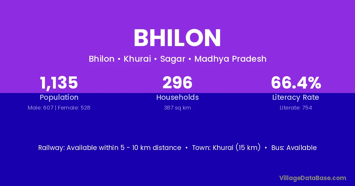 Khurai (15 km) is the nearest town to Bhilon village for major economic activities and is located approximately 15 km away.