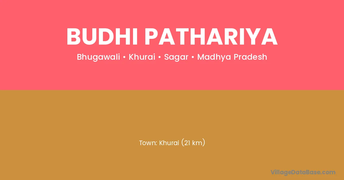 Khurai (21 km) is the nearest town to Budhi Pathariya village for major economic activities and is located approximately 21 km away.