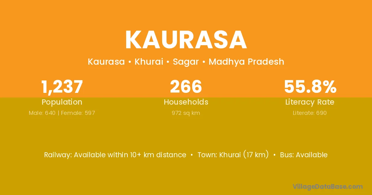 Khurai (17 km) is the nearest town to Kaurasa village for major economic activities and is located approximately 17 km away.