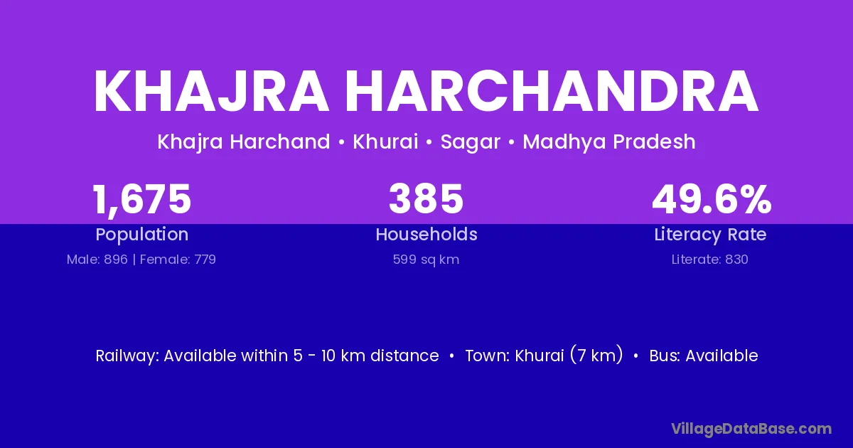 Khurai (7 km) is the nearest town to Khajra Harchandra village for major economic activities and is located approximately 7 km away.