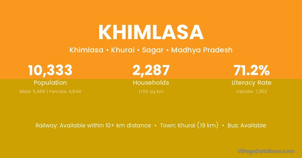 Khurai (19 km) is the nearest town to Khimlasa village for major economic activities and is located approximately 19 km away.