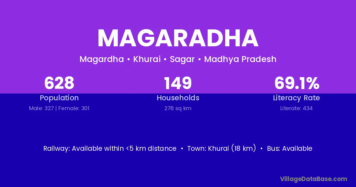 Khurai (18 km) is the nearest town to Magaradha village for major economic activities and is located approximately 18 km away.