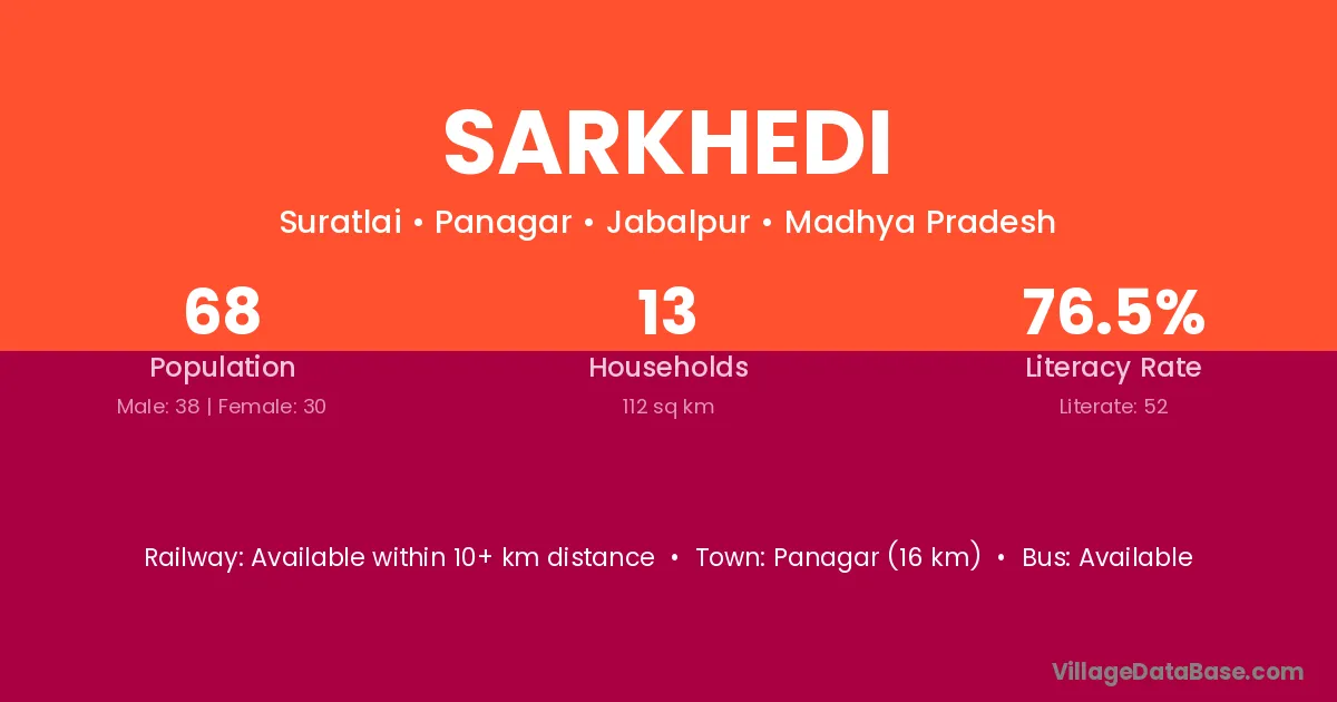 Khurai (10 km) is the nearest town to Sarkhedi village for major economic activities and is located approximately 10 km away.