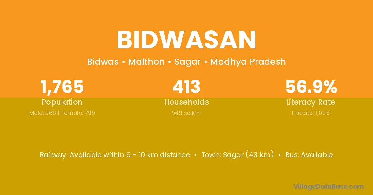 Sagar (43 km) is the nearest town to Bidwasan village for major economic activities and is located approximately 43 km away.