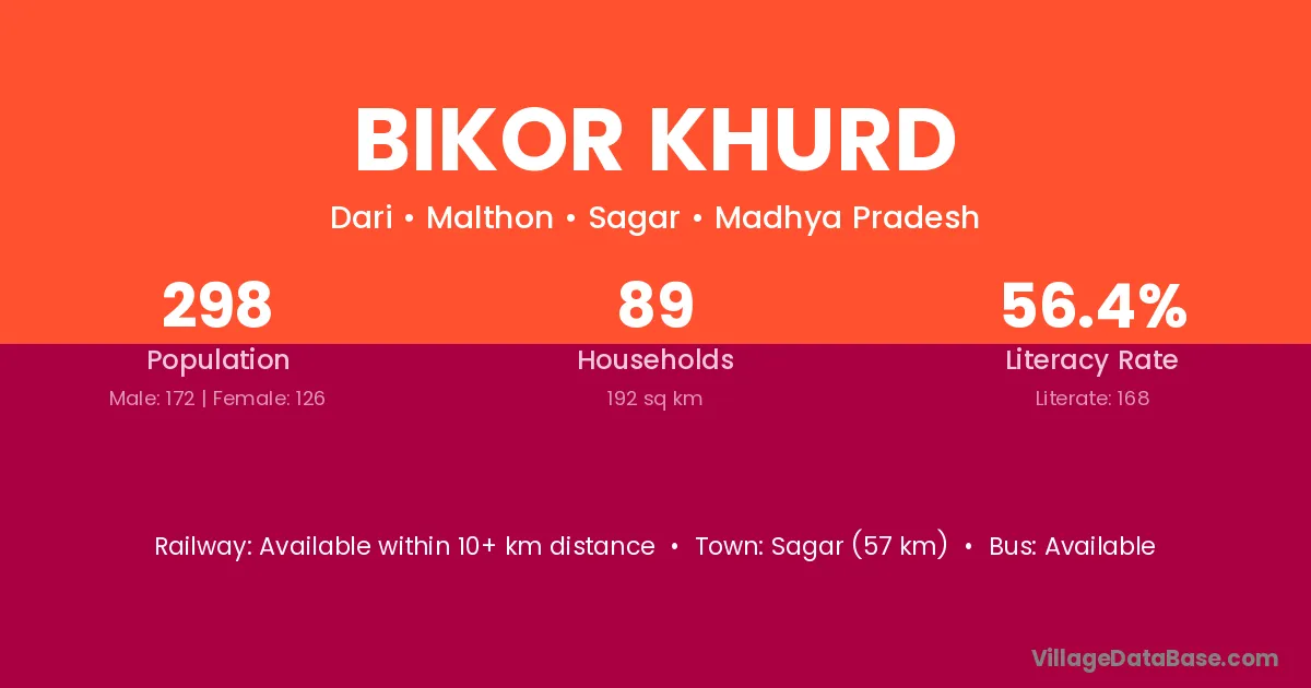 Bikor Khurd village has a total population of 298 people, of which 172 are males and 126 are females.