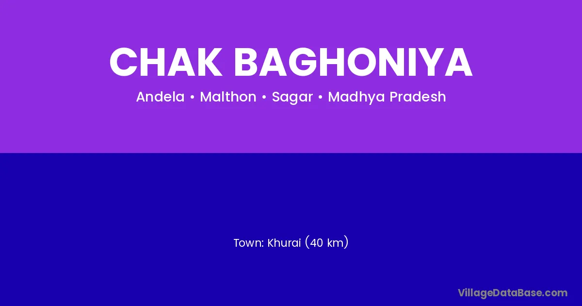 Khurai (40 km) is the nearest town to Chak Baghoniya village for major economic activities and is located approximately 40 km away.