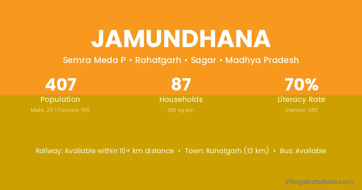 Khurai (35 km) is the nearest town to Jamundhana village for major economic activities and is located approximately 35 km away.