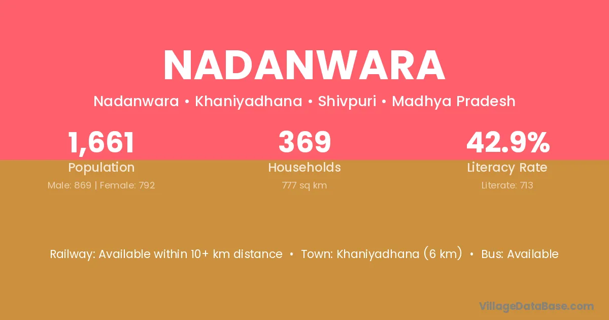 Shahgarh (14 km) is the nearest town to Nadanwara village for major economic activities and is located approximately 14 km away.