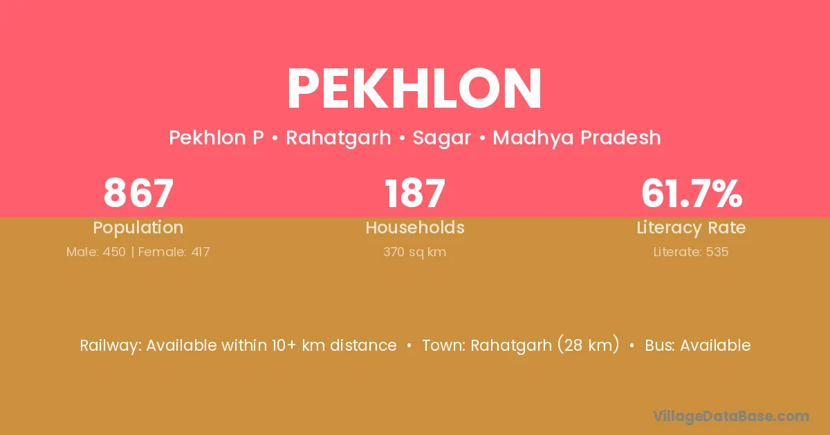 Rahatgarh (28 km) is the nearest town to Pekhlon village for major economic activities and is located approximately 28 km away.