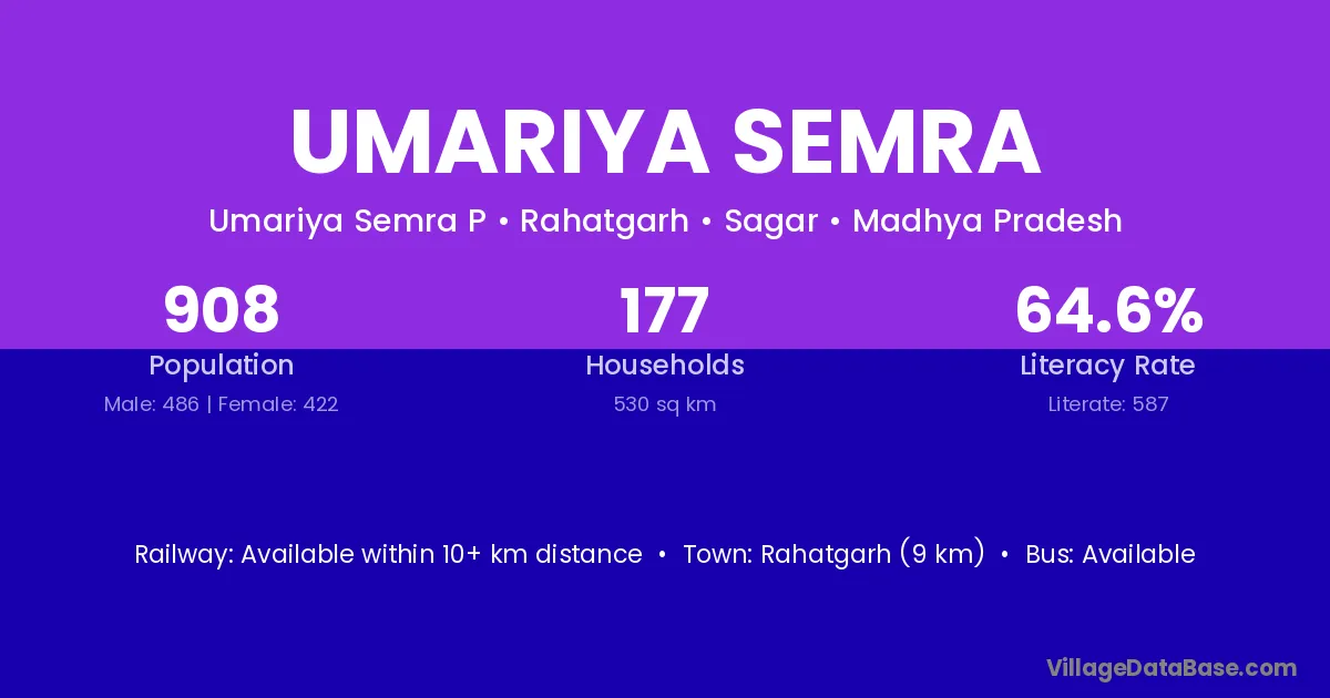 Rahatgarh (9 km) is the nearest town to Umariya Semra village for major economic activities and is located approximately 9 km away.